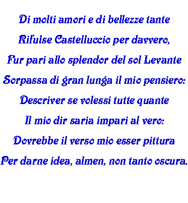 Il paese della fioritura è Castelluccio di Norcia, in Umbria, nel cuore del Parco Nazionale dei Monti Sibillini, un posto dove favole, leggende, tradizioni e realtà si fondono con la natura in una suggestione unica e irripetibile. Castelluccio di Norcia è buona cucina, lenticchie, volo libero, leggende, natura, agriturismo, scritte sui muri, ... |